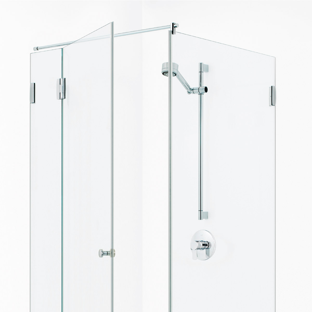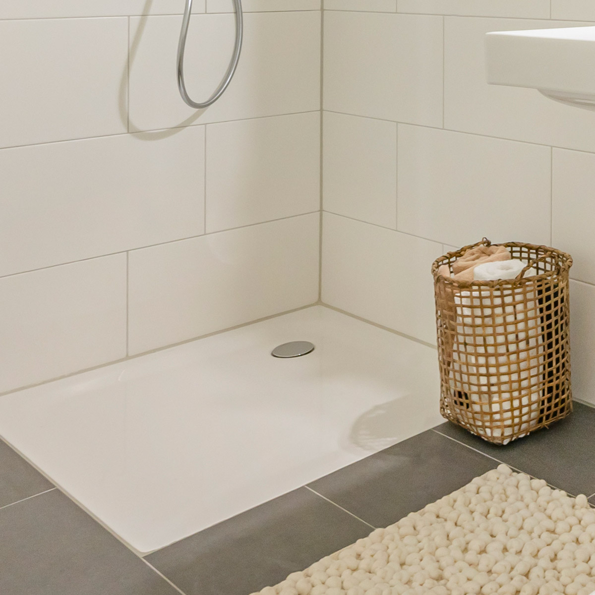- Bodengleiche Duschen mit rahmenlosen Glasduschtrennwänden